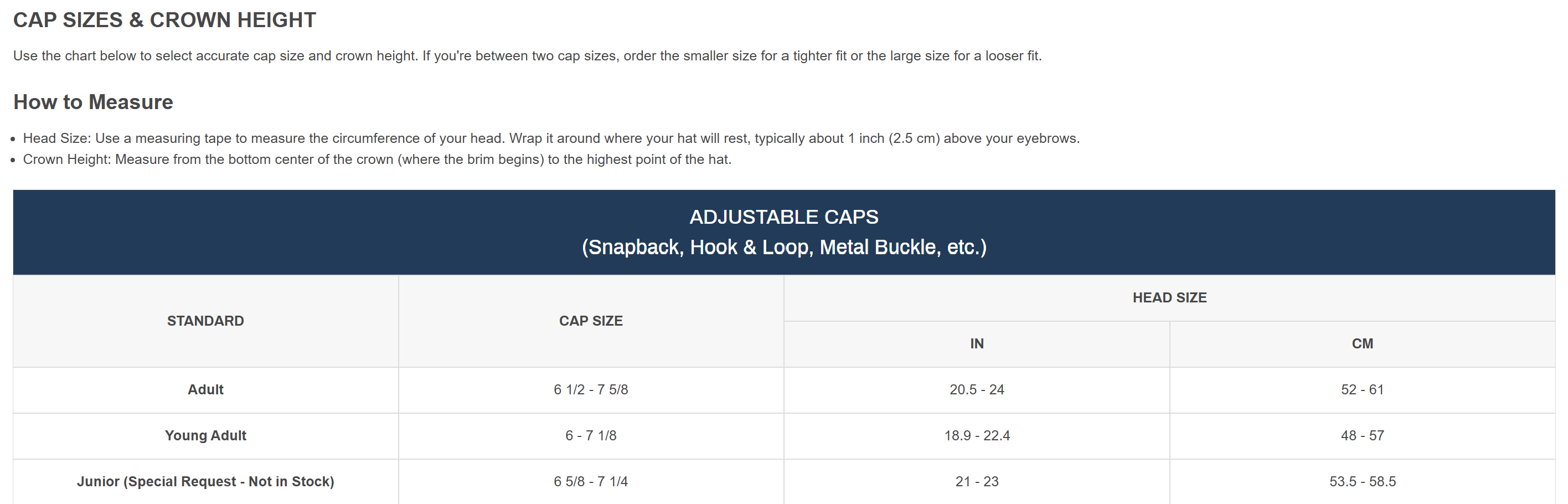 CAP SIZE 6 - 7 1/8